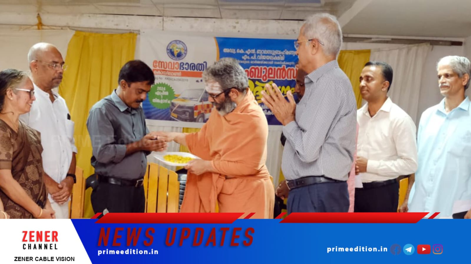 സേവാഭാരതിക്ക് നൽകിയ ആംബുലൻസ് സമർപ്പണ ചടങ്ങ് കൊളത്തൂർ മഠാധിപതി സംപൂജ്യ സ്വാമി ചിദാനന്ദപുരി ഉദ്ഘാടനം ചെയ്തു