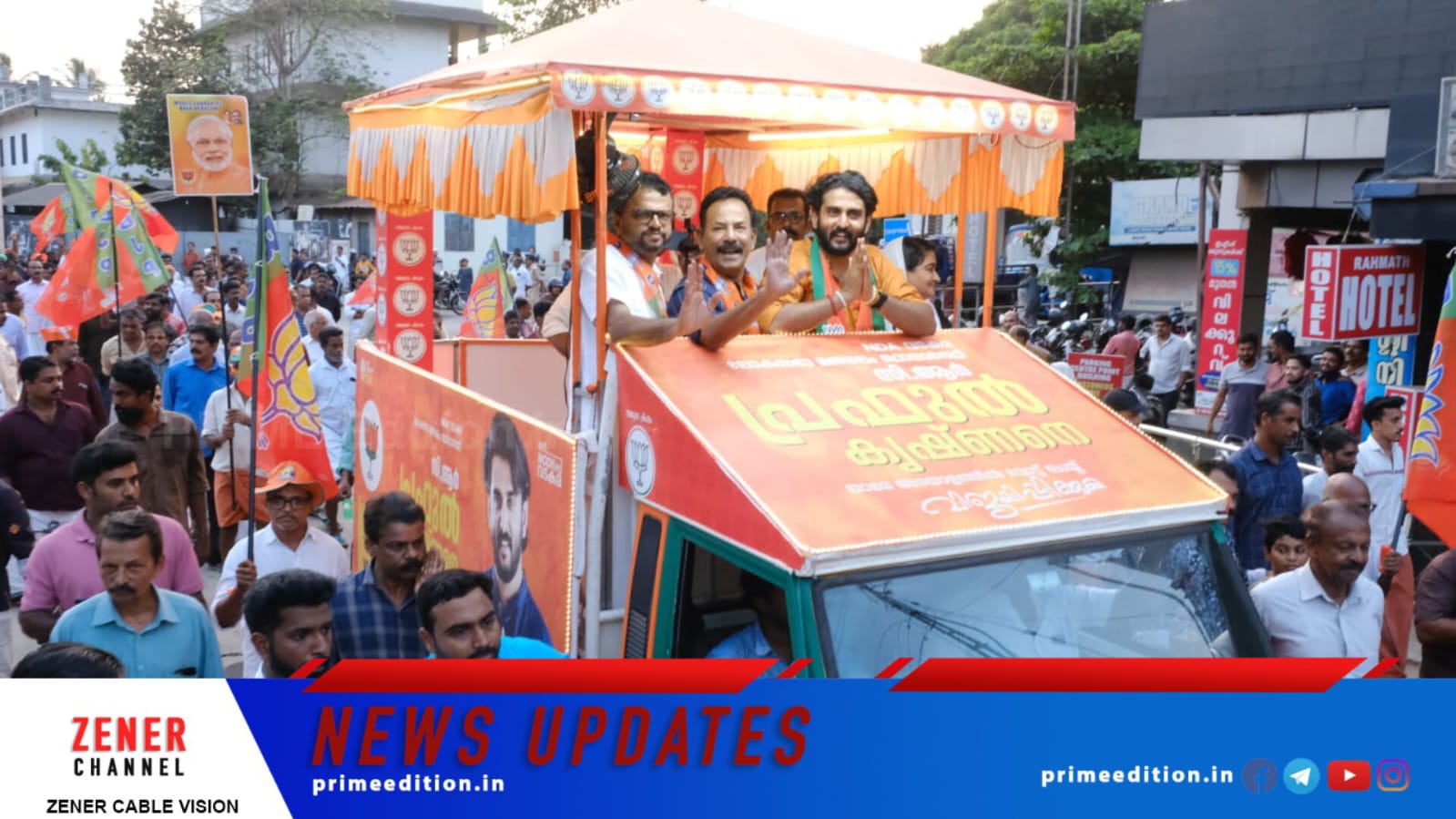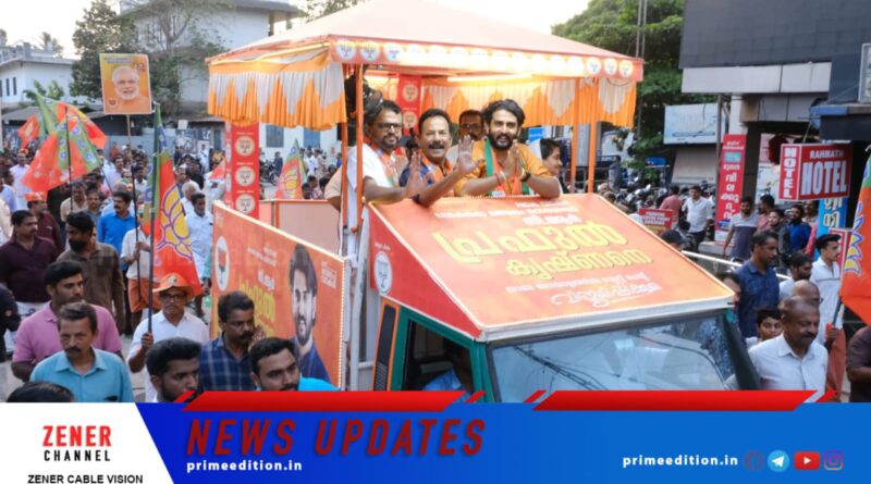 കൊയിലാണ്ടിയെ ഇളക്കിമറിച്ച് എന് ഡി എ സ്ഥാനാര്ത്ഥി പ്രഫുൽ കൃഷ്ണൻ്റെ റോഡ് ഷോ