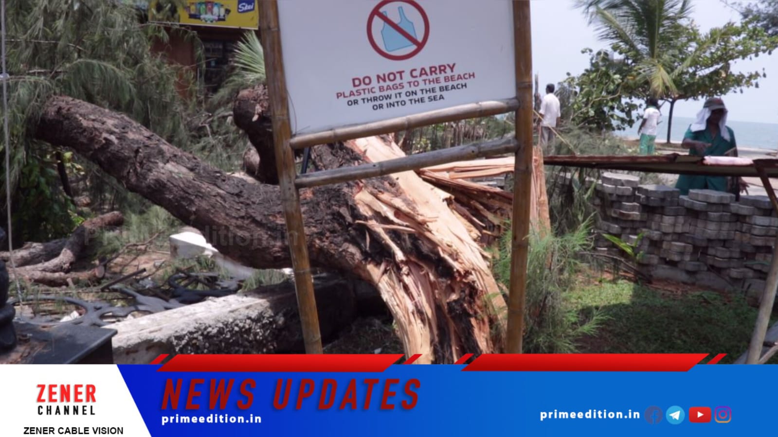 കാറ്റിലും മഴയിലും കാപ്പാട് ബ്ലൂ ഫ്‌ലാഗ് ബീച്ചില്‍ കാറ്റാടി മരങ്ങള്‍ കടപുഴകി വീണ് വിനോദസഞ്ചാരത്തിന് നിരോധനം ഏര്‍പ്പെടുത്തി