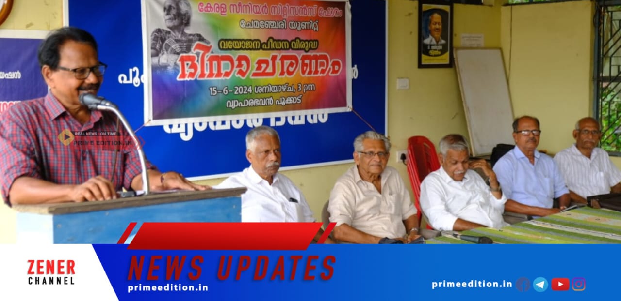 എം.സി.മമ്മദ് കോയ അധ്യക്ഷത വഹിച്ചു. ടി.കെ.രാധാകൃഷ്ണൻ വയോജനങ്ങൾക്ക് ഉപകാരപ്രദമായ നിയമ വശങ്ങളെപ്പറ്റിയുള്ള അറിവുകൾ പകർന്നു. പി.ദാമോദരൻ, ടി.രാഘവൻ, ടി.കെ.ദാമോദരൻ, വി.വി.ഉണ്ണി മാധവൻ, ഒ.കെ.വാസു എന്നിവർ സംസാരിച്ചു