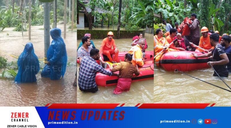 മഴവെള്ളപ്പാച്ചില് കുടുങ്ങിയ കുടുംബങ്ങളെ അഗ്നിരക്ഷാസേന ഡിങ്കി ബോട്ടും റോപ്പും ഉപയോഗിച്ച് രക്ഷപ്പെടുത്തി