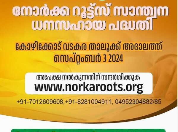 നോര്ക്ക സാന്ത്വന ധനസഹായപദ്ധതി വടകര താലൂക്ക് അദാലത്ത് സെപ്റ്റംബര് മൂന്നിന്