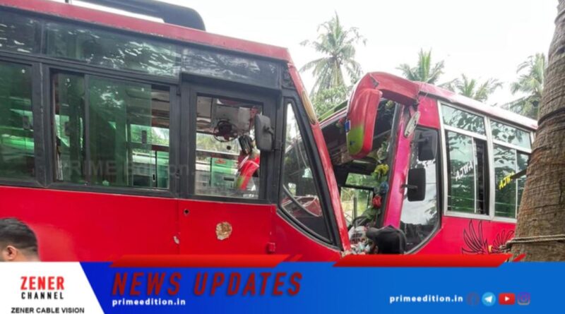 സ്വകാര്യ ബസ്സുകള് തമ്മില് കൂട്ടിയിടിച്ച് അപകടം; നിരവധി പേര്ക്ക് പരിക്ക്