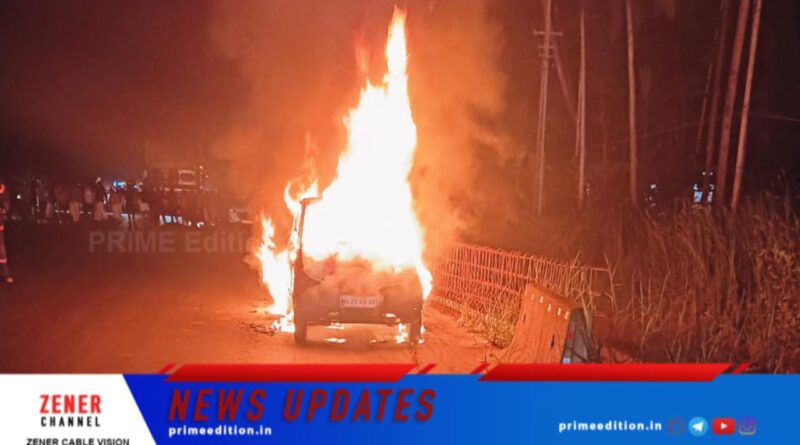ദേശീയപാതയിൽ ഓടിക്കൊണ്ടിരുന്ന കാറിന് തീപിടിച്ച് അപകടം
