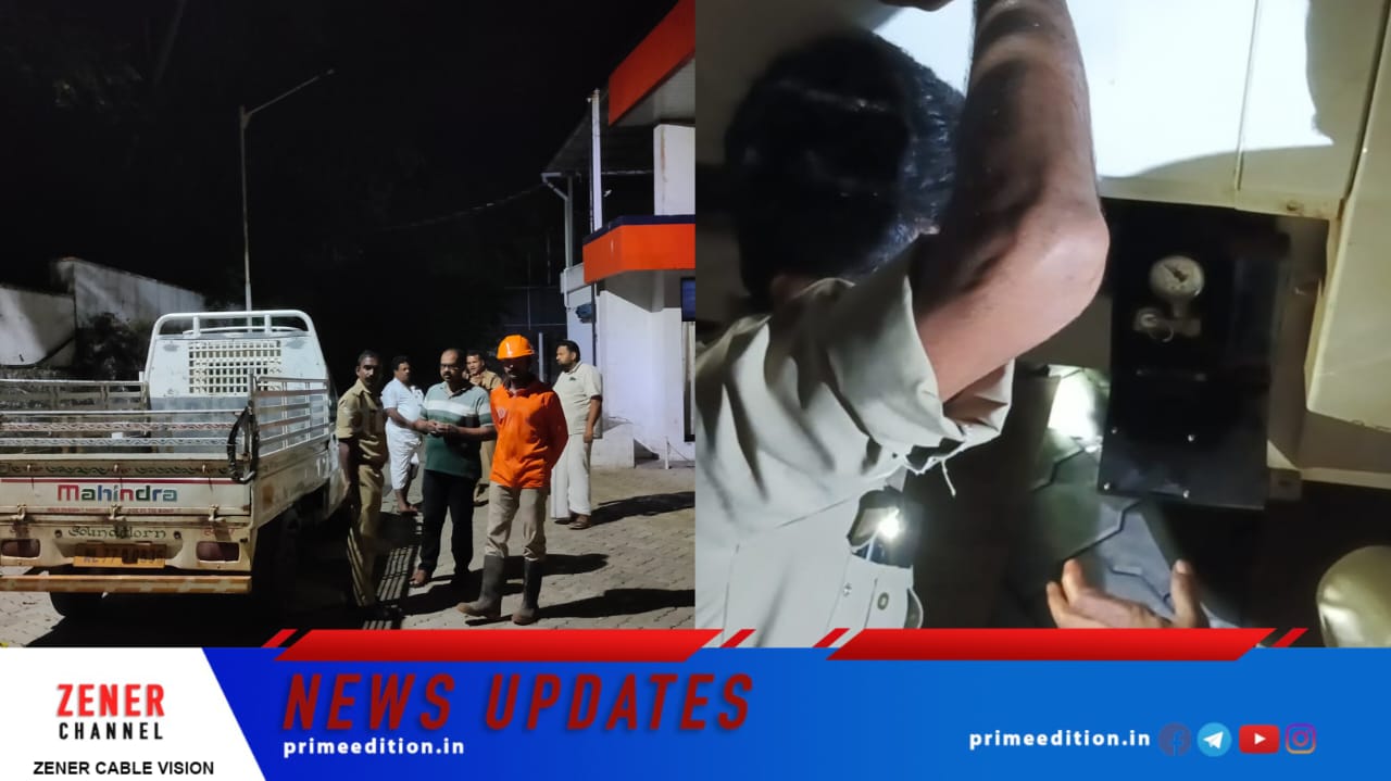 പെട്രോള് പമ്പില് നിന്ന് സി എന് ജി നിറയ്ക്കുന്നതിനിടയില് വാഹനത്തിന്റെ വാല്വ് തകരാര് ഇന്ധനം ചോര്ച്ച ഫയര്ഫേഴ്സ് എത്തി പരിഹരിച്ചു