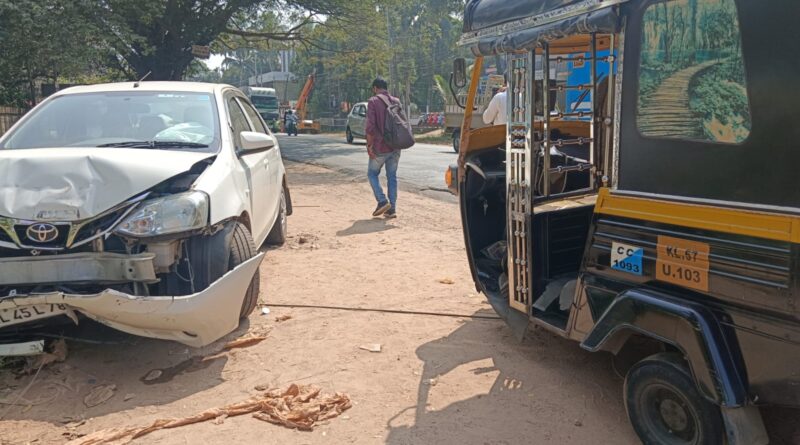 കൊയിലാണ്ടി അരങ്ങാടത്ത് സബ് ട്രഷറിക്ക് മുന്നില് കാറും ഓട്ടോറിക്ഷയും കൂട്ടിയിടിച്ച് അപകടം