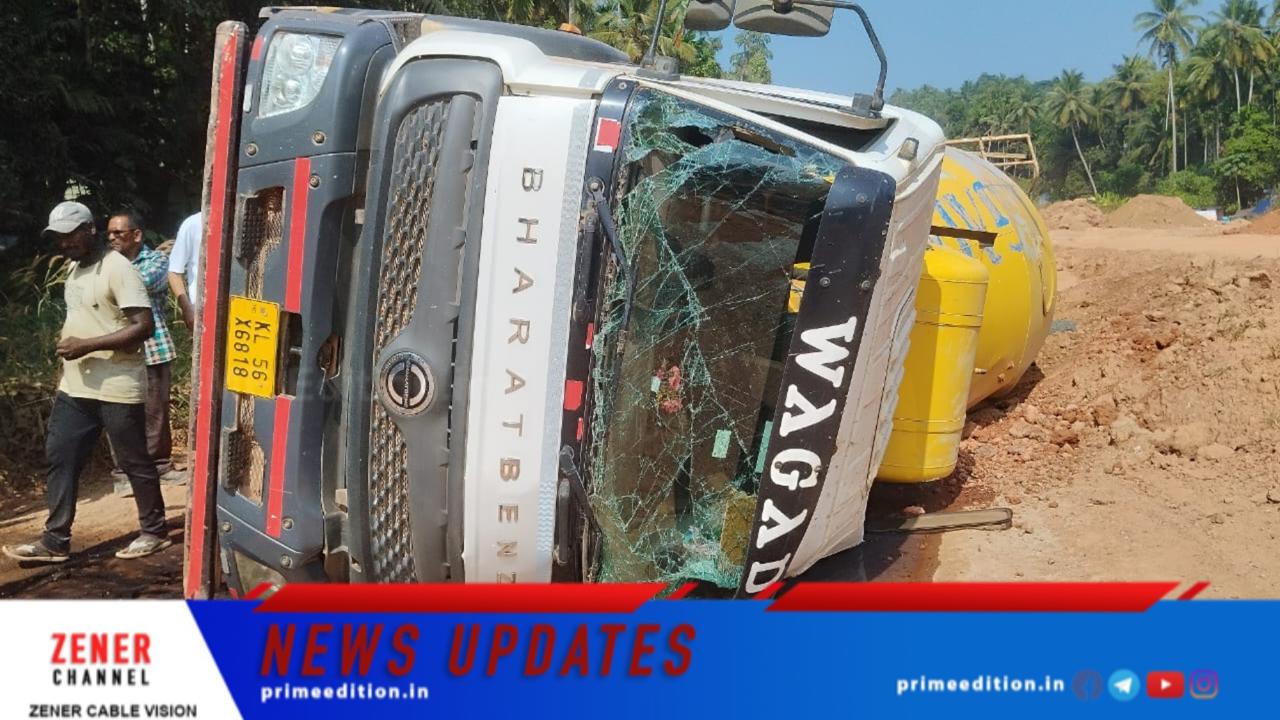 കോണ്ഗ്രീറ്റ് മിശ്രിതം കൊണ്ടുപോകുന്ന ടോറസ് ലോറി മറിഞ്ഞ് അപകടം