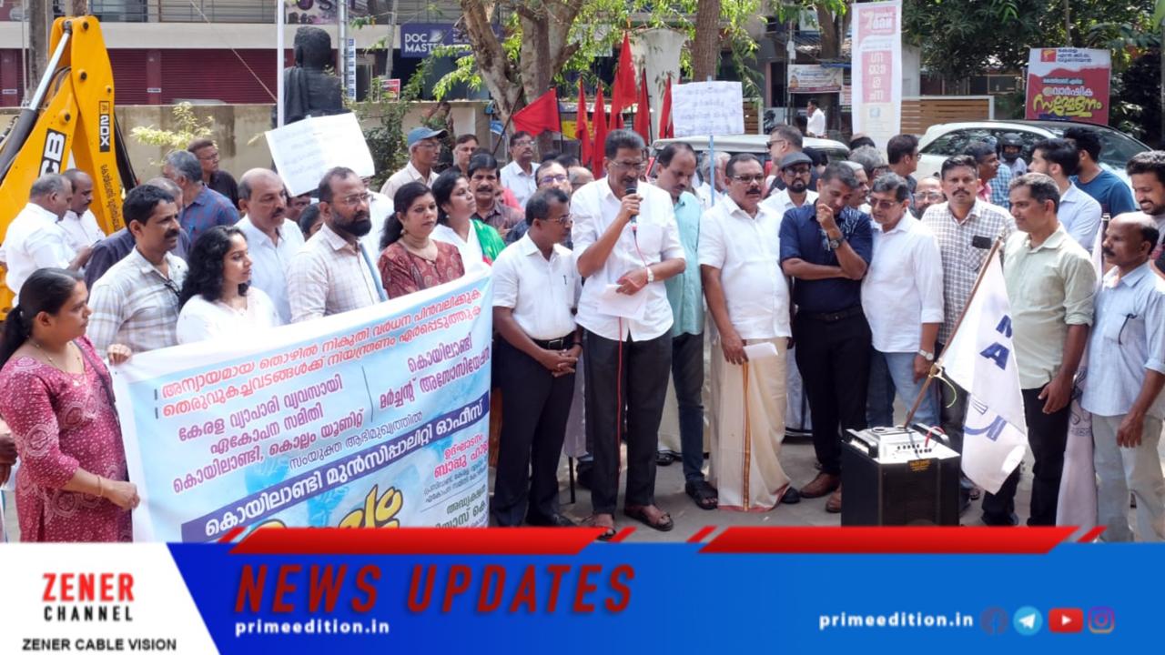 കൊയിലാണ്ടി: കേരളം വ്യാപാരി വ്യവസായി ഏകോപന സമിതി കൊയിലാണ്ടി കൊല്ലം യൂണിറ്റുകളും KMA യും സംയുക്തമായി കൊയിലാണ്ടി നഗരസഭയിലേക് നടത്തിയ മാർച്ചും ധർണയും ഏകോപന സമിതിയുടെ ജില്ലാ പ്രസിഡന്റ് ബാപ്പു ഹാജി ഉദ്ഘാടനം ചെയ്തു. കെ കെ നിയാസ് അധ്യക്ഷത വഹിച്ചു.