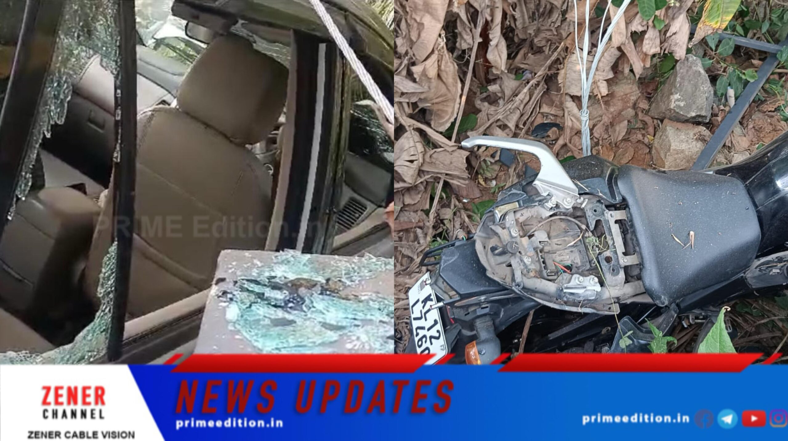 ബൈക്ക് യാത്രക്കാരെ 10 മീറ്റർ ഓളം ദൂരെ ഇടിച്ചുതെറിപ്പിച്ച നിലയിലാണ് . കെഎസ്ഇബി എച്ച് ഡി ലൈനും വീടിന്റെ മതിലും തകര്ത്ത നിലയിലാണ് കാർ.