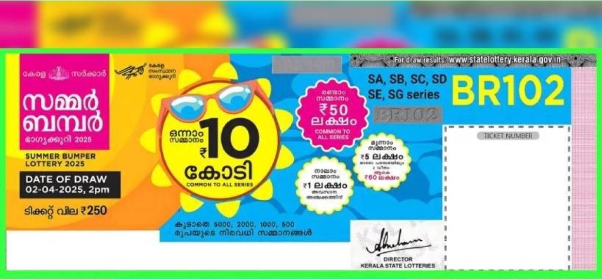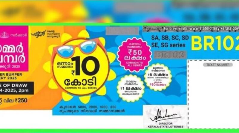 സമ്മർ ബമ്പർ നറുക്കെടുപ്പിലെ ഒന്നാം സമ്മാനമായ പത്ത് കോടി രൂപ SG 513715 ടിക്കറ്റിന്