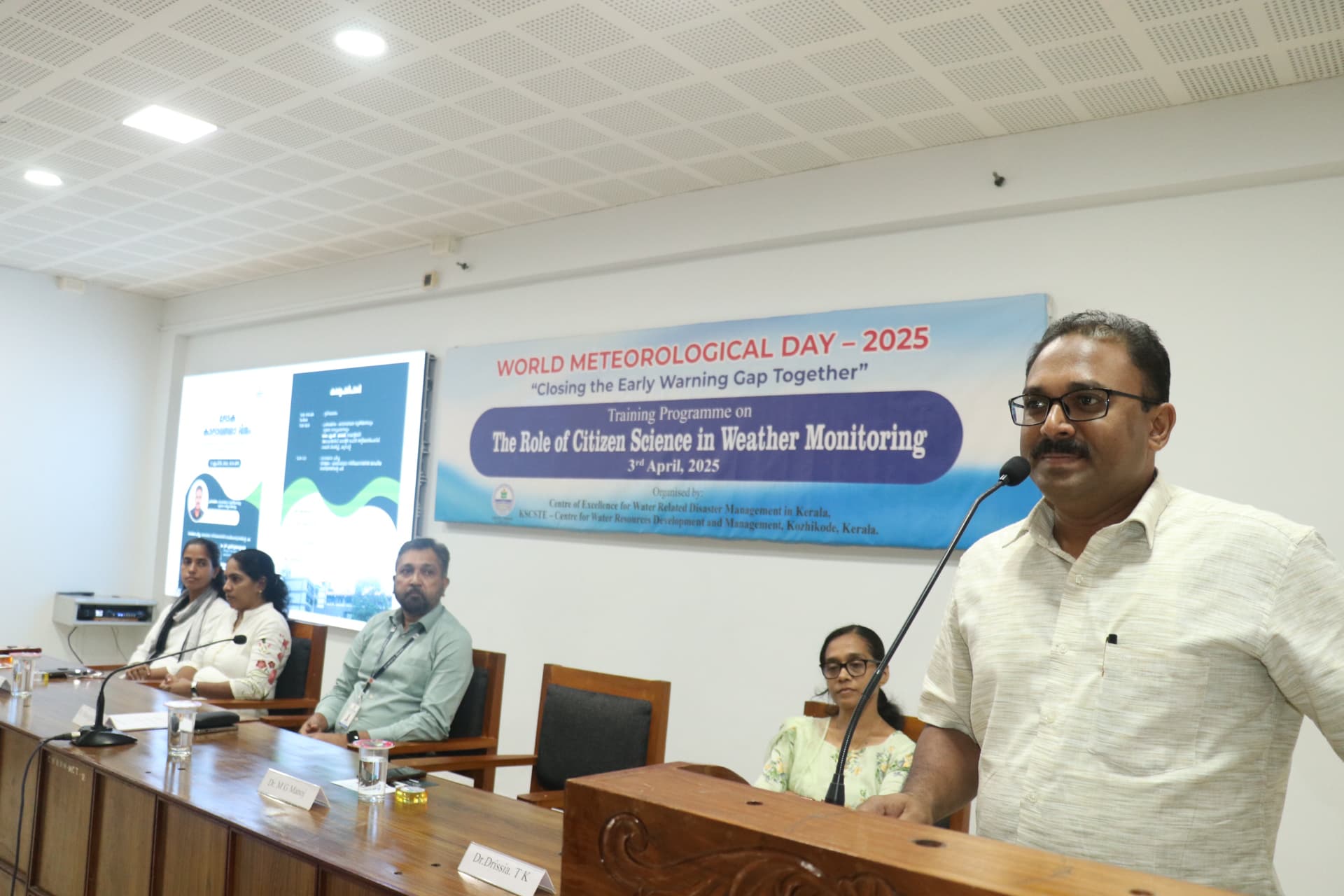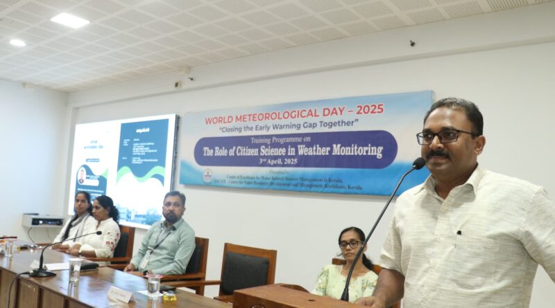 ജലവിഭവ വികസന വിനിയോഗ കേന്ദ്രത്തില് (സി.ഡബ്ലു.ആര്.ഡി.എം) കാലാവസ്ഥാ നിരീക്ഷണത്തില് ജനകീയ ശാസ്ത്രത്തിന്റെ പങ്ക് എന്ന വിഷയത്തില് തദ്ദേശ സ്വയഭരണ സ്ഥാപനങ്ങളിലെ ജനപ്രതിനിധികള്ക്കുള്ള പരിശീലന പരിപാടി സംഘടിപ്പിച്ചു. കാലാവസ്ഥാ മുന്നറിയിപ്പ് സംവിധാനങ്ങളിലെ വിടവുകള് നികത്താന് ഒരുമിക്കുക’ എന്ന ഈ വര്ഷത്തെ ലോക കാലാവസ്ഥ ദിനത്തിന്റെ മുഖ്യ പ്രമേയത്തെ ആസ്പദമാക്കി സംഘടിപ്പിച്ച പരിപാടിയില് കുസാറ്റ് അഡ്വാന്സ്ഡ് സെന്റര് ഫോര് അറ്റ്മോസ് ഫെറിക് റഡാര് റിസര്ച്ച് സയന്റിസ്റ്റ് ഡോ.മനോജ് എം.ജി കാലാവസ്ഥാ വ്യതിയാനവും ദുരന്തലഘൂകരണവും എന്ന വിഷയത്തില് മുഖ്യപ്രഭാഷണം നടത്തി.