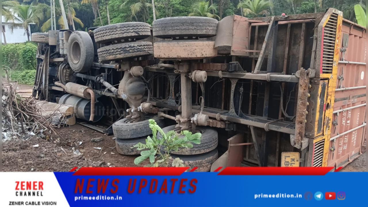 ടോറസ് ലോറി നിയന്ത്രണം നഷ്ടപ്പെട്ട് ഇരുചക്ര വാഹനത്തെ ഇടിച്ച് മറിഞ്ഞു