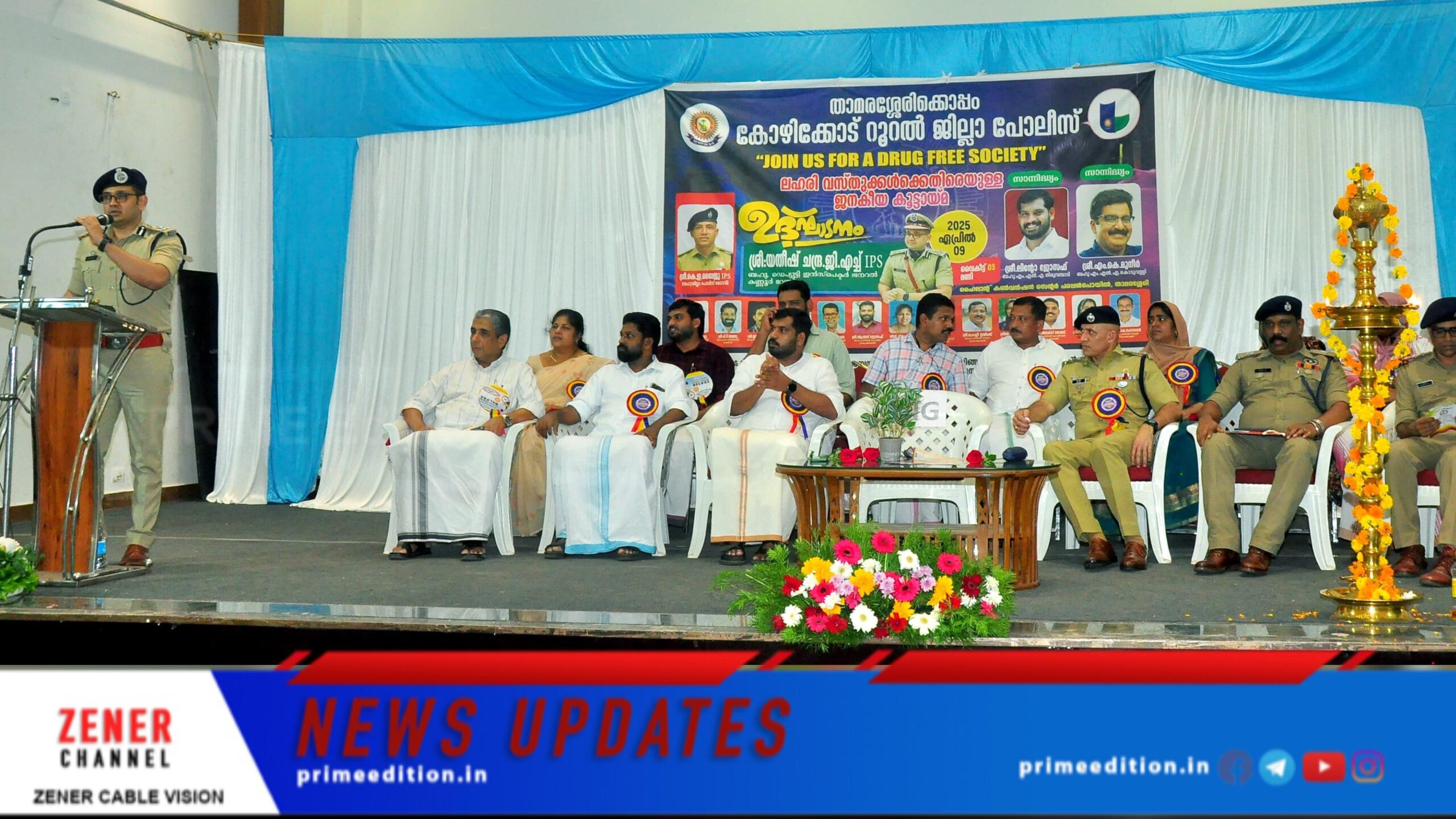 കണ്ണൂർ: വർധിച്ചു വരുന്ന ലഹരി വസ്തുക്കളുടെ ഉപയോഗത്തിനെതിരെ പ്രതിരോധം തീർക്കുക എന്ന ലക്ഷ്യത്തോടെ കോഴിക്കോട് റൂറൽ ജില്ലാ പോലീസിന്റെ നേതൃത്വത്തിൽ ജനകീയ പ്രതിരോധ കൂട്ടായ്മ സംഘടിപ്പിച്ചു. താമരശ്ശേരി പരപ്പൻ പൊയിൽ ഹൈലാന്റ് കൺവെൻഷൻ സെന്ററിൽ നടന്ന പരിപാടി കണ്ണൂർ റേഞ്ച് ഡിഐജി ജി എച്ച് യതീഷ് ചന്ദ്ര ഉദ്ഘാടനം ചെയ്തു. ലിന്റോ ജോസഫ് എം എൽ എ അധ്യക്ഷനായി.