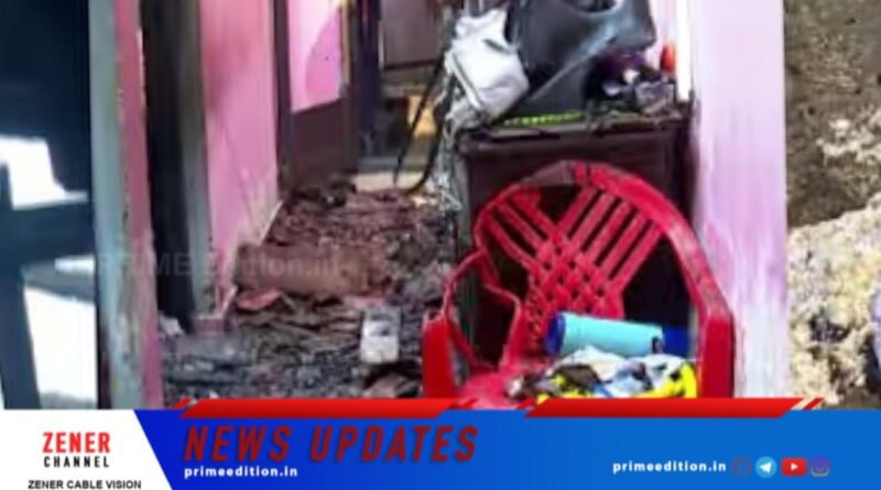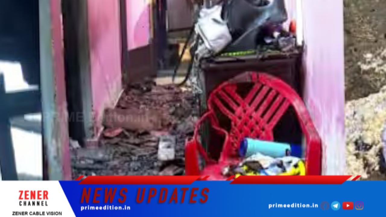 പൊലീസ് കസ്റ്റഡിയിലെടുത്ത ആളുടെ വീട് കത്തി നശിച്ച നിലയിൽ