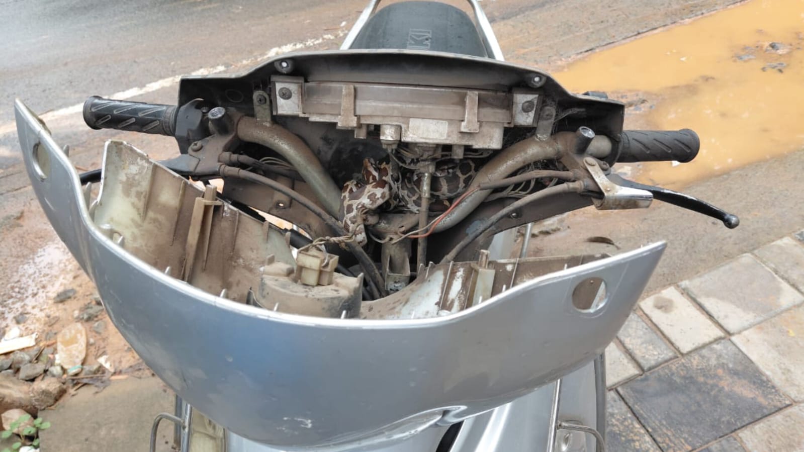 സ്കൂട്ടിറിന്റെ വൈസറിനുള്ളില് രണ്ട് പെരുമ്പാമ്പ്,റിപ്പയറിങ്ങ് ജീവനക്കാരനാണ് കണെ്ടത്തിയത്