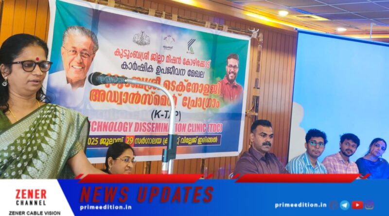 കോഴിക്കോട്: കുടുംബശ്രീ ജില്ലാമിഷന്റെ നേതൃത്വത്തില് കാര്ഷിക മേഖലയിലെ സംരംഭങ്ങളെ മികവുറ്റതാക്കാനുള്ള കുടുംബശ്രീ ടെക്നോളജി അഡ്വാന്സ്മെന്റ് പ്രോഗ്രാം (കെ ടാപ്) പദ്ധതിയുടെ പരിശീലനം സംഘടിപ്പിച്ചു. കുടുംബശ്രീയുടെ കാര്ഷിക സംരംഭ യൂണിറ്റുകള്ക്ക് നൂതന സാങ്കേതികവിദ്യകള് സൗജന്യമായി നല്കി കുടുംബശ്രീ പ്രവര്ത്തകര്ക്ക് കാര്ഷിക മേഖലയില് ഉപജീവന മാര്ഗവും തൊഴില് അവസരങ്ങളും സ്യഷ്ട്ടിക്കുക എന്ന ലക്ഷ്യതോടെയാണ് പരിശീലനം സംഘടിപ്പിച്ചത്. ജില്ലയിലെ സിഡിഎസ് ചെയര്പേഴ്സണ്മാര്, കുടുംബശ്രീ സംരംഭകർ തുടങ്ങി 300 ഓളം പേര് പങ്കെടുത്തു.