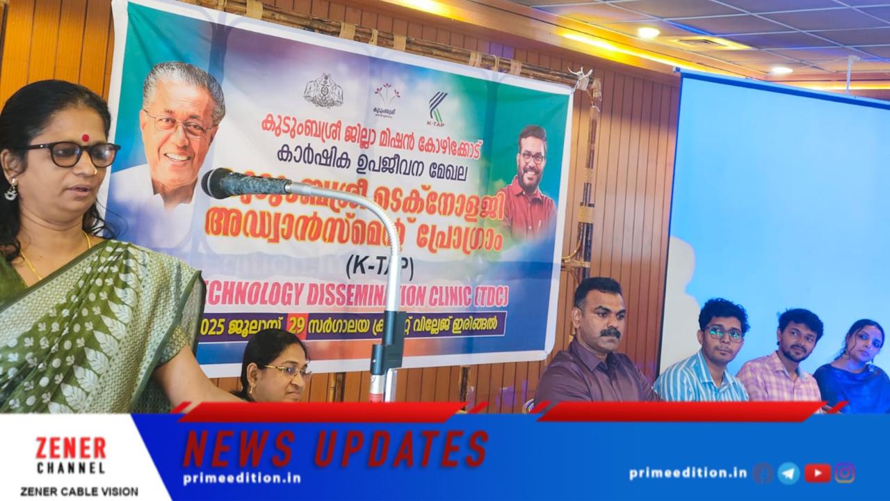 കോഴിക്കോട്: കുടുംബശ്രീ ജില്ലാമിഷന്റെ നേതൃത്വത്തില് കാര്ഷിക മേഖലയിലെ സംരംഭങ്ങളെ മികവുറ്റതാക്കാനുള്ള കുടുംബശ്രീ ടെക്നോളജി അഡ്വാന്സ്മെന്റ് പ്രോഗ്രാം (കെ ടാപ്) പദ്ധതിയുടെ പരിശീലനം സംഘടിപ്പിച്ചു. കുടുംബശ്രീയുടെ കാര്ഷിക സംരംഭ യൂണിറ്റുകള്ക്ക് നൂതന സാങ്കേതികവിദ്യകള് സൗജന്യമായി നല്കി കുടുംബശ്രീ പ്രവര്ത്തകര്ക്ക് കാര്ഷിക മേഖലയില് ഉപജീവന മാര്ഗവും തൊഴില് അവസരങ്ങളും സ്യഷ്ട്ടിക്കുക എന്ന ലക്ഷ്യതോടെയാണ് പരിശീലനം സംഘടിപ്പിച്ചത്. ജില്ലയിലെ സിഡിഎസ് ചെയര്പേഴ്സണ്മാര്, കുടുംബശ്രീ സംരംഭകർ തുടങ്ങി 300 ഓളം പേര് പങ്കെടുത്തു.