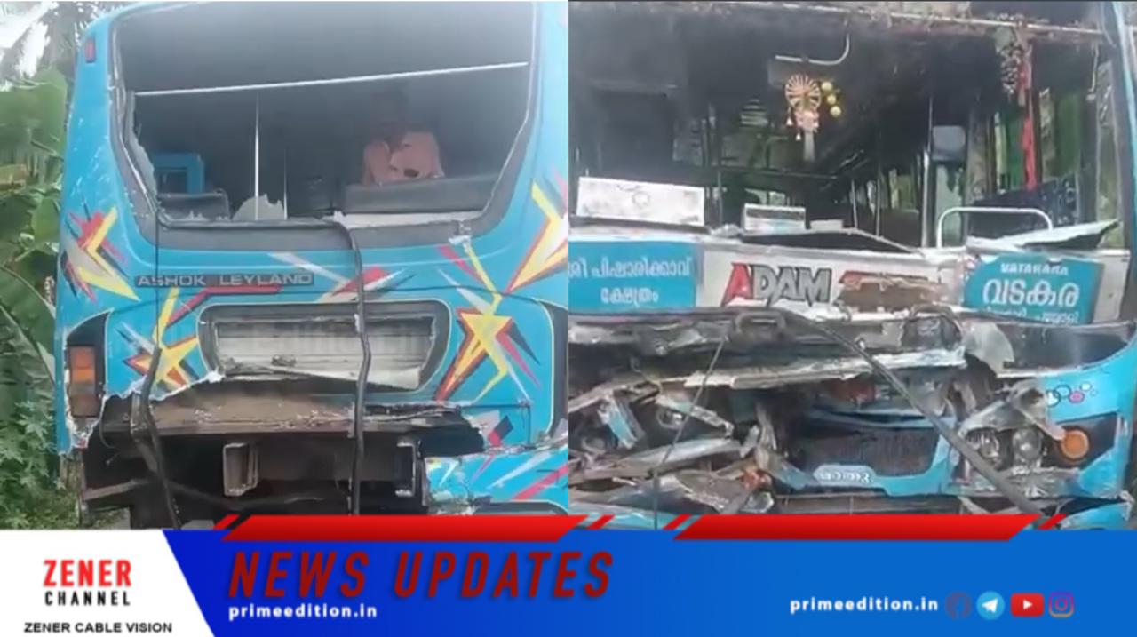 വടകര ഭാഗത്തേക്ക് പോവുകയായിരുന്ന ഹരേ റാം ബസ് ആളെ കയറ്റുന്നതിനായി നിർത്തിയപ്പോൾ പിറകിൽ നിന്ന് വരികയായിരുന്ന ശ്രീരാം ബസ് ഇടിക്കുകയായിരുന്നു.