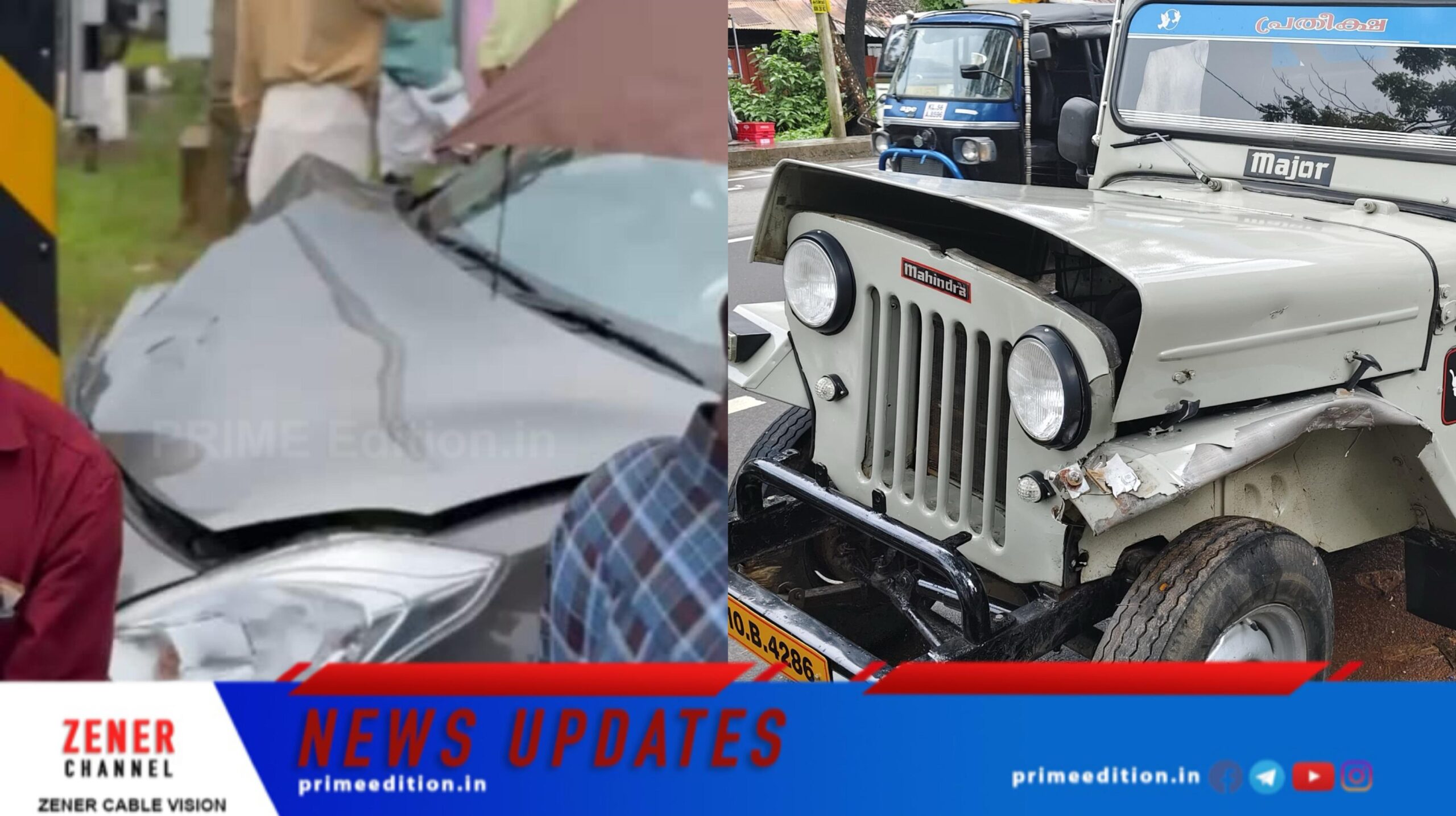 കാറും ജീപ്പും കൂട്ടിയിടിച്ചു മൂന്നു പേര്ക്ക് പരിക്ക്