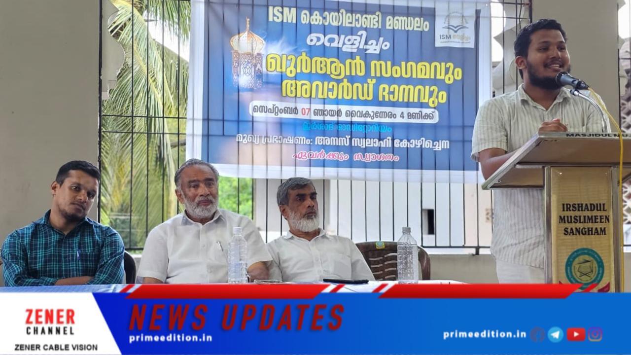 കൊയിലാണ്ടി :ഐ. എസ്. എം കൊയിലാണ്ടി മണ്ഡലം “വെളിച്ചം” ഖുർആൻ സംഗമവും വെളിച്ചം, ബാല വെളിച്ചം എന്നിവയിൽ ഉന്നത വിജയം നേടിയവർക്കുള്ള അവാർഡ് ദാനവും ഇർശാദ് ഓഡിറ്റോറിയത്തിൽ വച്ച് നടന്നു. പരിപാടി കെ. എൻ .എം മണ്ഡലം സെക്രട്ടറി ടി. വി അബ്ദുൽ ഖാദർ ഉദ്ഘാടനം ചെ യ്തു.
