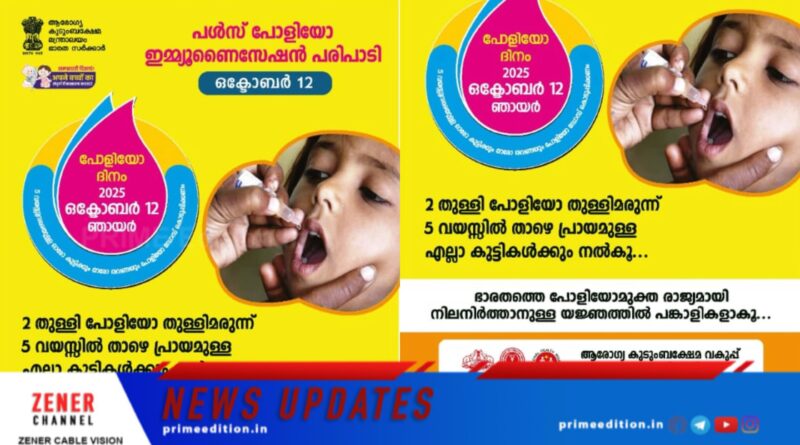 പള്സ് പോളിയോ ഇമ്യൂണൈസേഷന് പരിപാടി ഇന്ന്