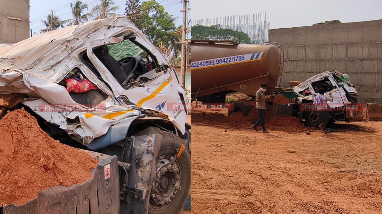 നന്തിയില് കെമിക്കലുമായി വന്ന ലോറിയ്ക്കു മുകളില് മണ്ണ് ഇറക്കുന്നതിനിടയില് ടോറസ് ലോറി നിയന്ത്രണം നഷ്ടപ്പെട്ട് മറിഞ്ഞ് അപകടം