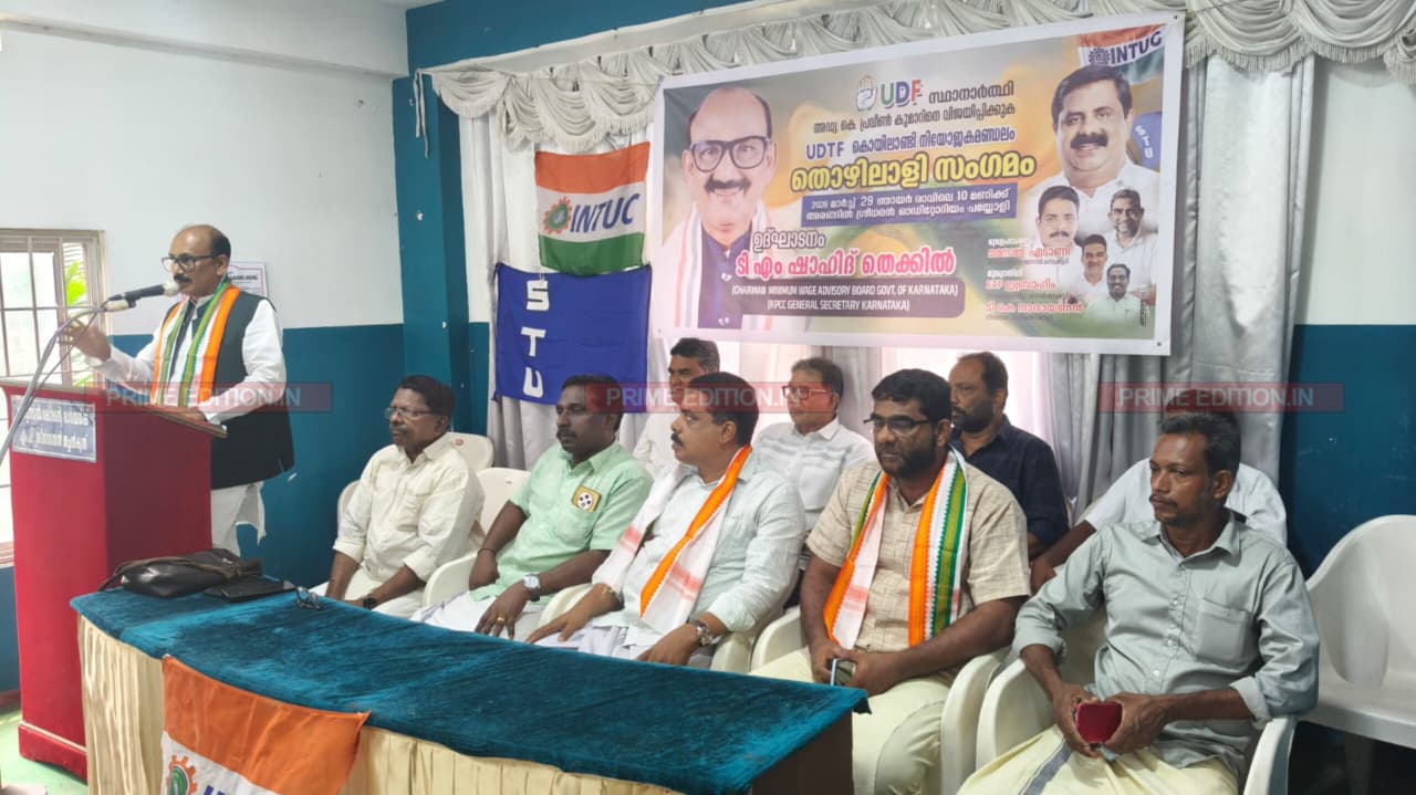 കൊയിലാണ്ടി: കൊയിലാണ്ടി നിയോജക മണ്ഡലം ഐക്യജനാധിപത്യമുന്നണി സ്ഥാനാർത്ഥി അഡ്വ. കെ. പ്രവീൺകുമാറിനെ വിജയിക്കാൻ യു ഡി ടി എഫ് തൊഴിലാളി സംഗമം സംഘടിപ്പിച്ചു. കർണ്ണാടക പ്രദേശ് കോൺഗ്രസ് ജനറൽ സെക്രട്ടറിയും മിനിമം വേജസ് ബോർഡ് ചെയർമാനുമായ ടി. എം. ഷാഹിദ് തെക്കിൽ ഉദ്ഘാടനം ചെയ്തു.