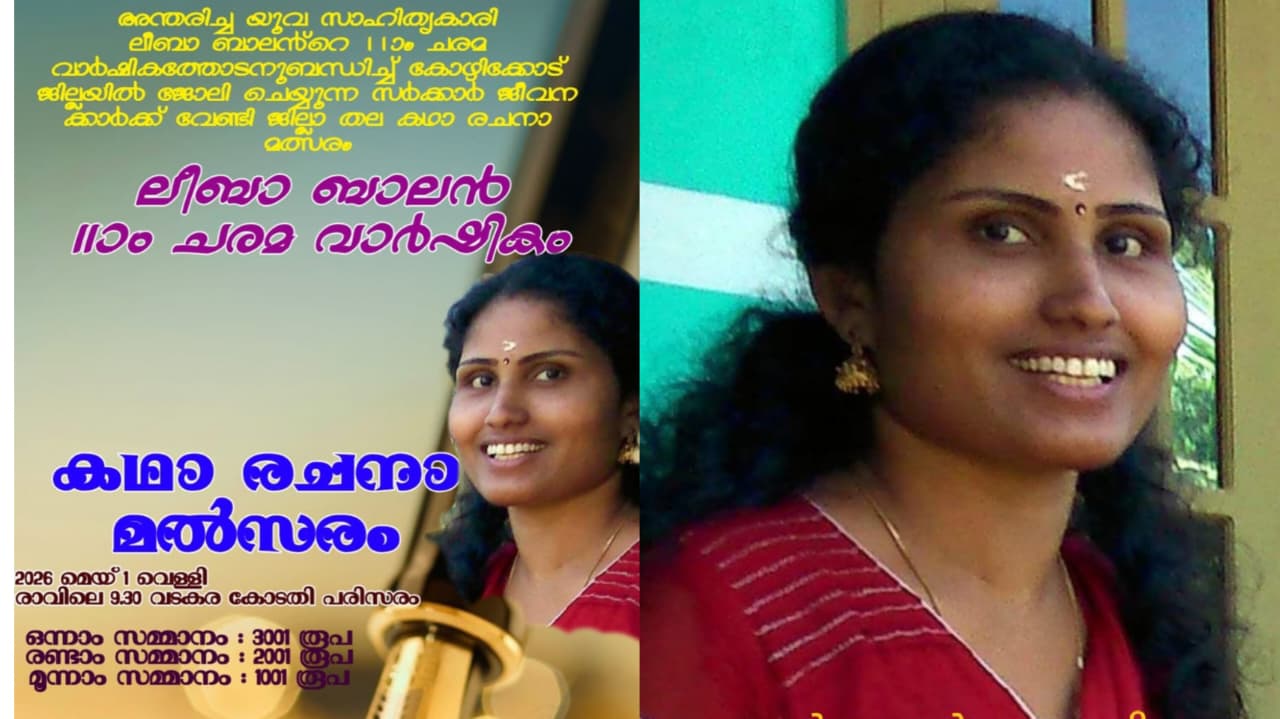 വടകര: വടകര കോടതി ജീവനക്കാരിയും അകാലത്തില്‍ അന്തരിച്ച യുവ സാഹിത്യകാരിയുമായിരുന്ന ലീബാ ബാലന്റെ സ്മരണക്കായി സഹ പ്രവര്‍ത്തകര്‍ ഓര്‍മ്മ ദിനം ആചരിക്കുന്നു.