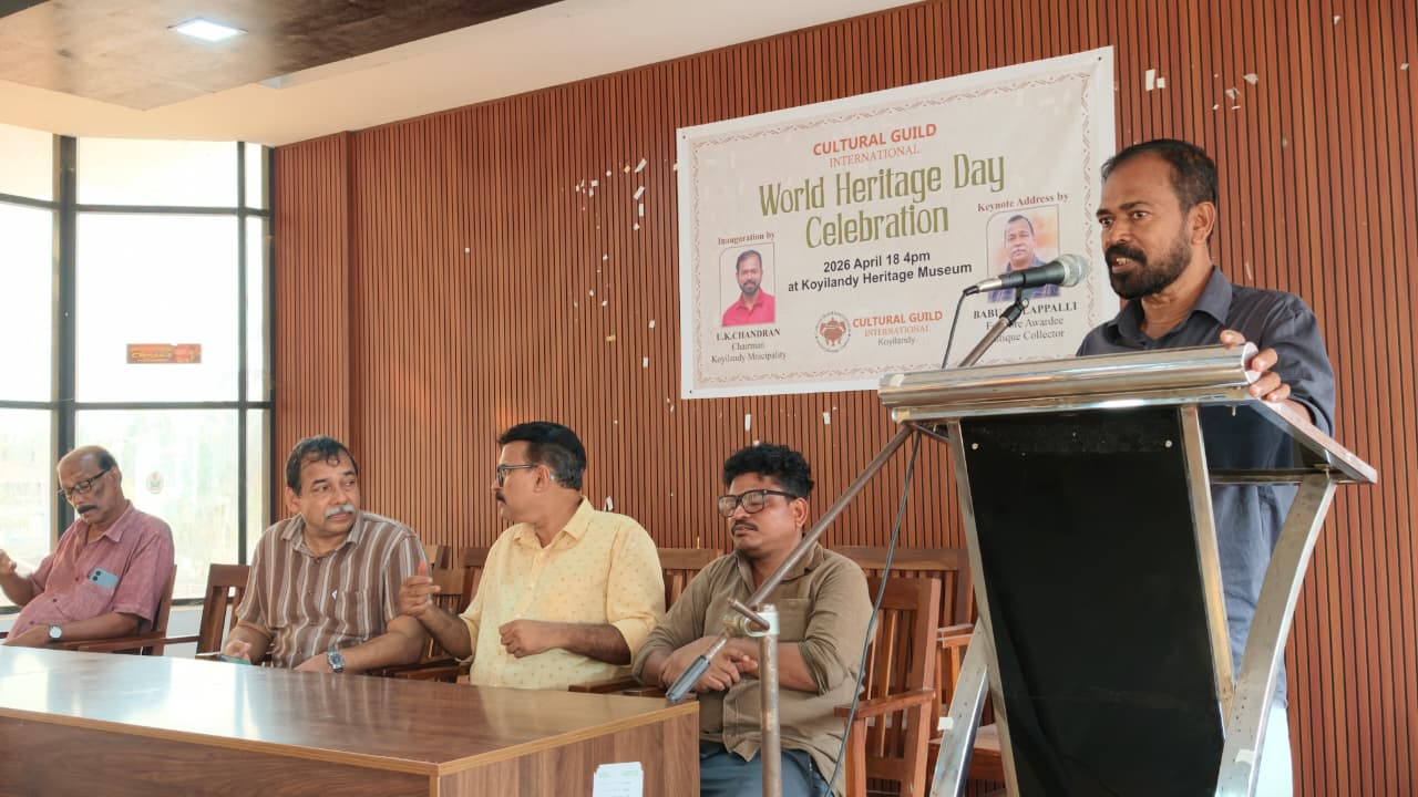 ബാബു കൊളപ്പള്ളി മുഖ്യ പ്രഭാഷണം നടത്തി. യുദ്ധങ്ങള് പ്രകൃതി ദുരന്തങ്ങള് തുടങ്ങിയ അടിയന്തര സാഹചര്യങ്ങളില് സാംസ്കാരിക സ്മാരകങ്ങളും ജനങ്ങളുടെ ജീവിത പാരമ്പര്യങ്ങളും സംരക്ഷിക്കുന്നതില് ശ്രദ്ധ കേന്ദ്രീകരിക്കുന്നതാണ് 2026ലെ പൈതൃക ദിന സന്ദേശം.