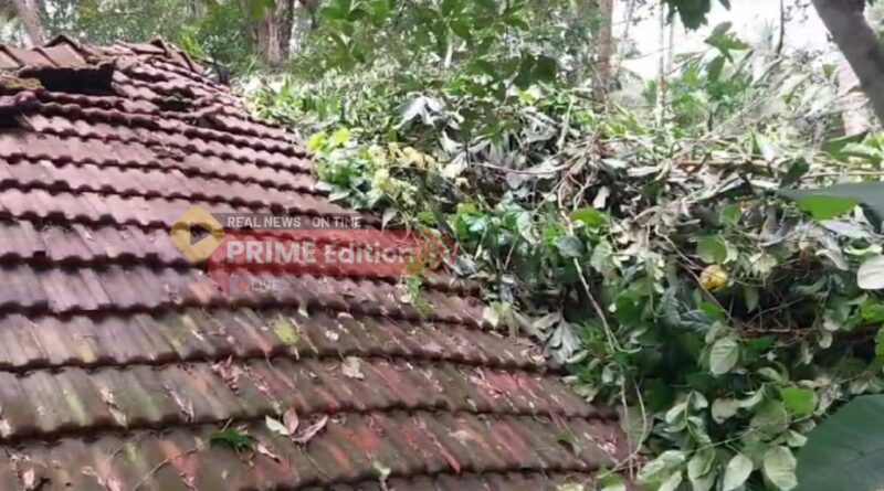 അരിക്കുളം കാരയാട് കാറ്റിലും മഴയിലും വന്‍മരം കടപുഴകി വീണ് വീട് തകര്‍ന്നു