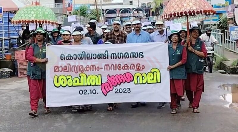 മാലിന്യ മുക്തം നവകേരളം പദ്ധതിയുടെ ഭാഗമായി കൊയിലാണ്ടി നഗരത്തിൽ ശുചീകരണവും ശുചിത്വ സന്ദേശ റാലിയും സംഘടിപ്പിച്ചു. നഗരസഭയുടെ നേതൃത്വത്തിൽ നടന്ന ശുചീകരണ പ്രവർത്തനങ്ങളുടെ ഉദ്ഘാടനം ചെയർപേഴ്സൺ കെ പി സുധ നിർവഹിച്ചു.