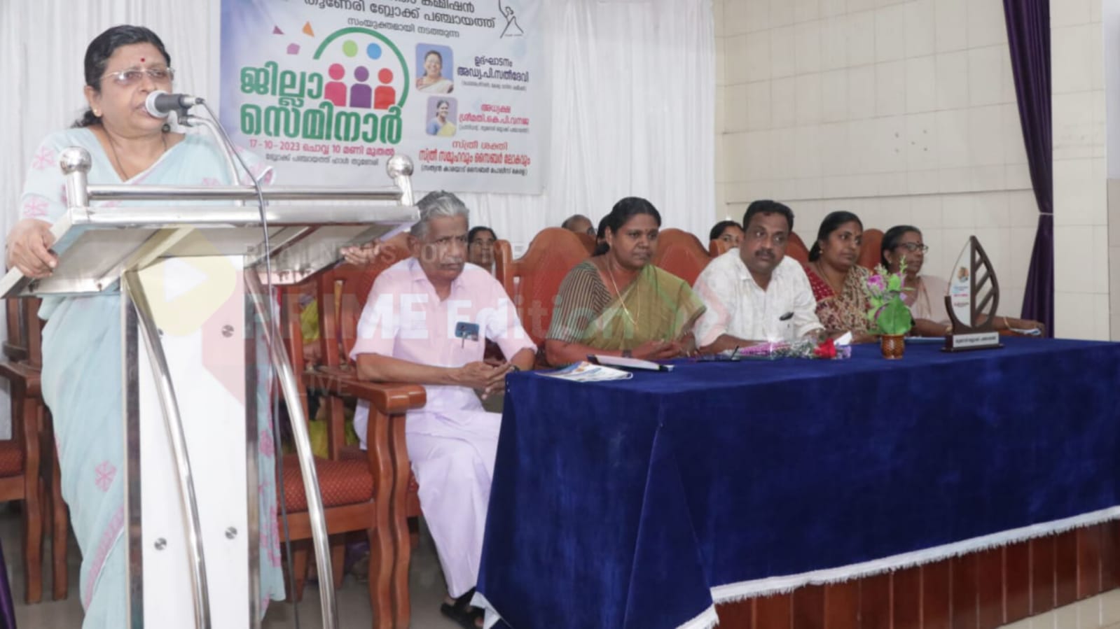 സ്ത്രീയെ സ്വന്തം കാലിൽ നിൽക്കാൻ പ്രാപ്തരാക്കേണ്ടതിന്റെ ഉത്തരവാദിത്വം രക്ഷിതാക്കൾക്കാണെന്ന് സംസ്ഥാന വനിതാ കമ്മീഷൻ അധ്യക്ഷ അഡ്വ. പി സതീദേവി. വനിതാ കമ്മീഷനും തൂണേരി ബ്ലോക്ക് പഞ്ചായത്തും സംയുക്തമായി തൂണേരി ബ്ലോക്ക് പഞ്ചായത്ത് ഹാളിൽ സംഘടിപ്പിച്ച ‘സ്ത്രീശക്തി: സ്ത്രീ സമൂഹവും സൈബർ ലോകവും’ ജില്ലാ സെമിനാർ ഉദ്ഘാടനം ചെയ്ത് സംസാരിക്കുകയായിരുന്നു അവർ.