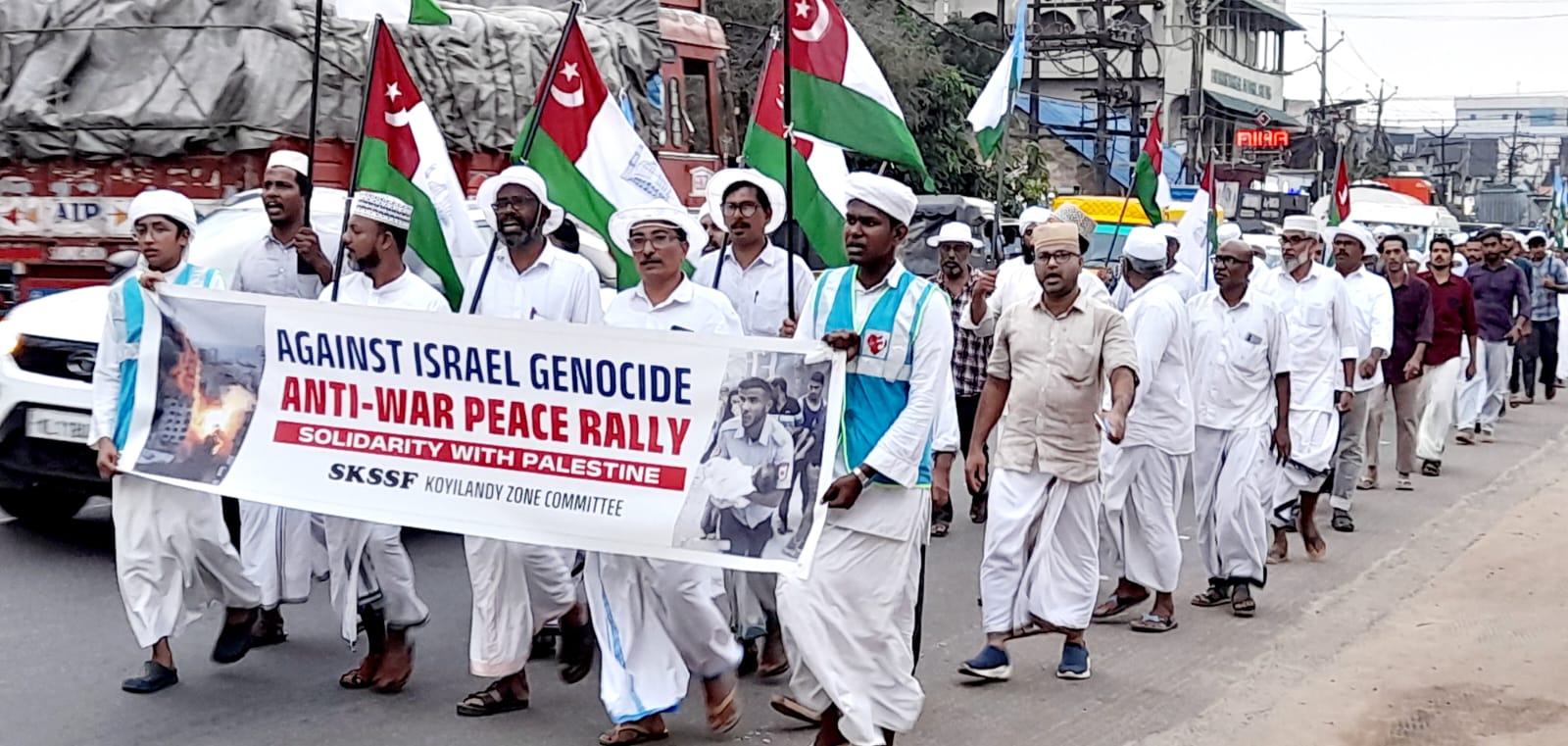 കൊയിലാണ്ടി : ഇസ്രയേല് കൂട്ടക്കുരുതിക്കെതിരെ കൊയിലാണ്ടിയില് എസ്. കെ. എസ്. എസ്.എഫ്, എസ്.വൈ.എസ്. യുദ്ധവിരുദ്ധ സമാധാന റാലി സംഘടിപ്പിച്ചു.