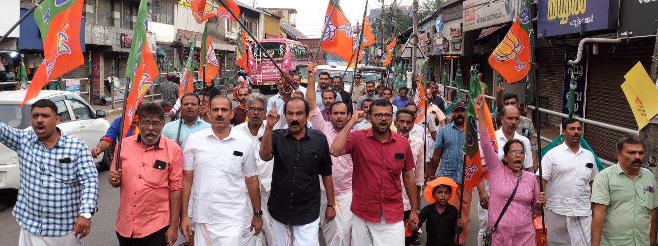 കൊയിലാണ്ടി ബിജെപി ഓഫീസ് പരിസരത്ത് നിന്ന് ആരംഭിച്ച പ്രകടനം മാര്ക്കറ്റ് പരിസരത്ത് അവസാനിപ്പിച്ചു. ബിജെപി കൊയിലാണ്ടി മണ്ഡലം പ്രസിഡണ്ട് എസ്.ആര് ജയ്കിഷ് , ജില്ല ട്രഷറര് വി.കെ ജയന് , സ്റ്റേറ്റ് കൗണ്സില് അഗം വായനാരി വിനോദ്, മണ്ഡലം ജനറല് സെക്രട്ടറിമാരായ കെ.വി സുരേഷ്, അഡ്വ. എ വി നിധിന് എന്നിവര് സംസാരിച്ചു.