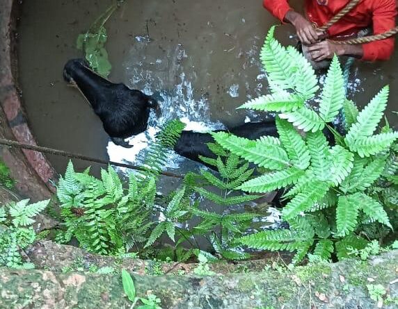 എട്ടു മീറ്റര് ആഴമുള്ള കിണറ്റില് വീണ മൂന്നു വയസ്സ് പ്രായമുള്ള പോത്തിനെ രക്ഷപ്പെടുത്തി