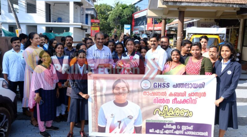 നാഷണല് സ്കൂള് കബഡി ജൂനിയര് വിഭാഗത്തില് കേരളത്തെ പ്രതിനിധീകരിച്ച് പങ്കെടുത്ത ദില്ന ദീപക്ന് സ്വീകരണം നല്കി