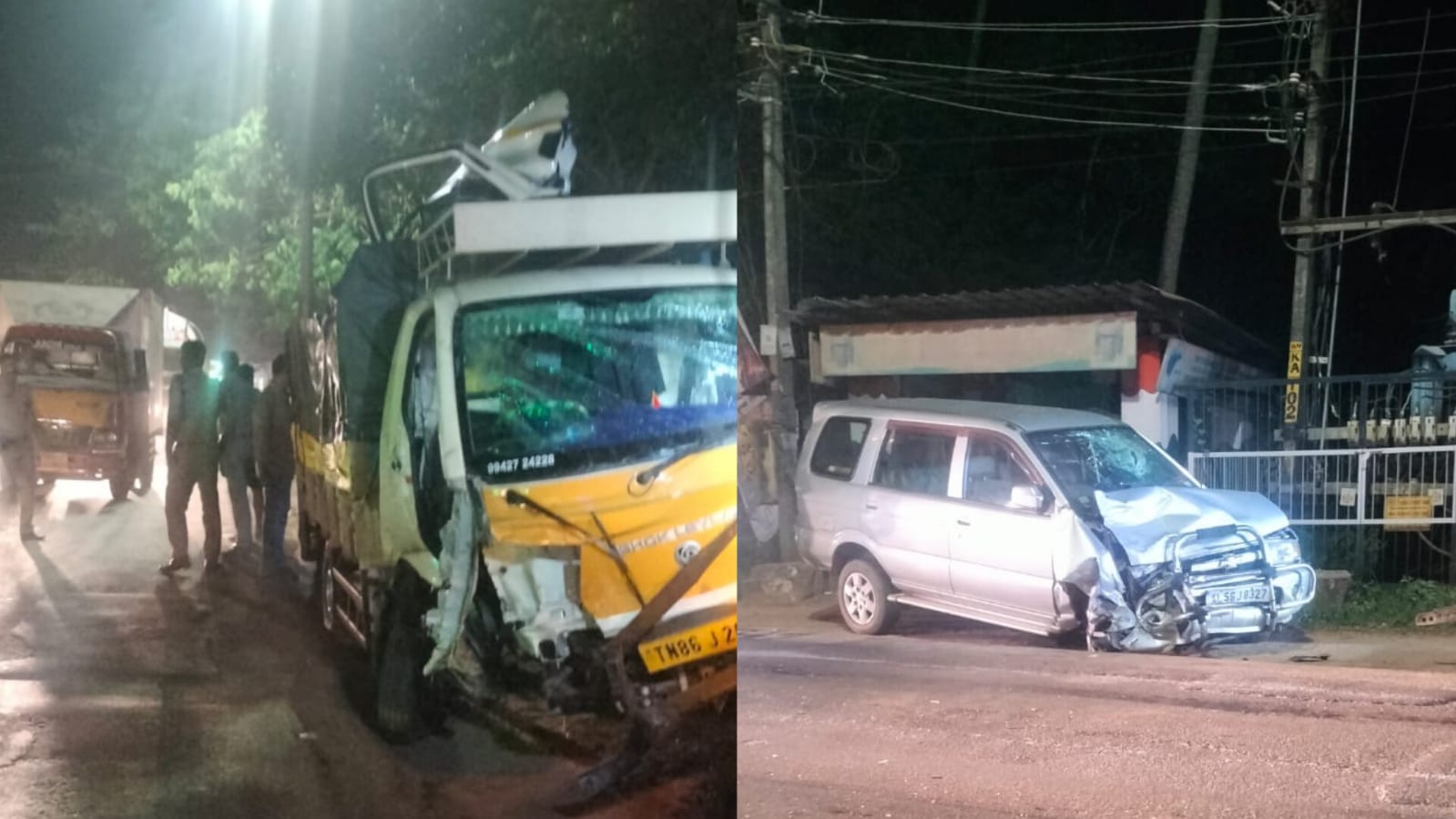 ഇടിയുടെ ആഘാതത്തില് രണ്ട് വാഹനങ്ങളിലെയും ഡ്രൈവര്മാര്ക്ക് പരിക്കേറ്റു. ടവേര കാറിന്റെ ഡ്രൈവറായ അരങ്ങാടത്ത് സ്വദേശിയെ കോഴിക്കോട് മെഡിക്കല് കോളേജ് ആശുപത്രിയില് പ്രവേശിപ്പിച്ചു. പിക്കപ്പ് ലോറി ഡ്രൈവറെ കൊയിലാണ്ടി താലൂക്ക് ആശുപത്രിയിലും പ്രവേശിപ്പിച്ചു.