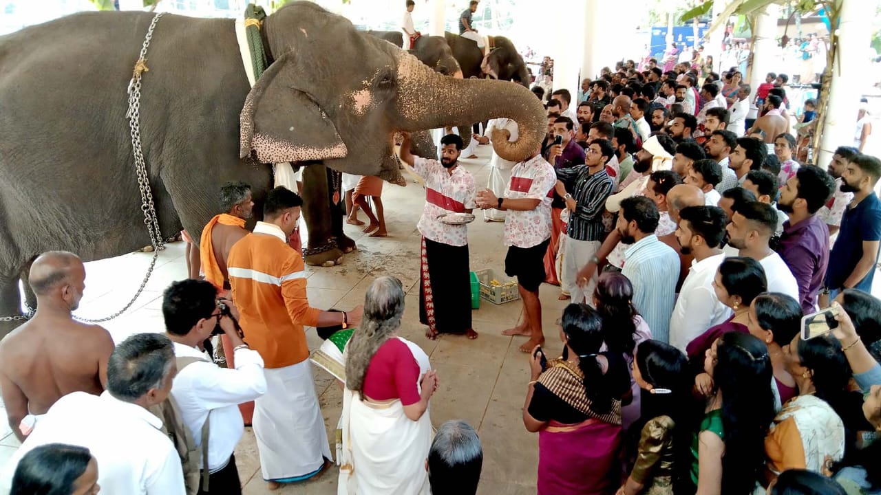 ആറാട്ടുമഹോത്സവത്തിൻ്റെ ഭാഗമായി വിയ്യൂർ വിഷ്ണു ക്ഷേത്രത്തിൽ ആനയൂട്ട് നടത്തി