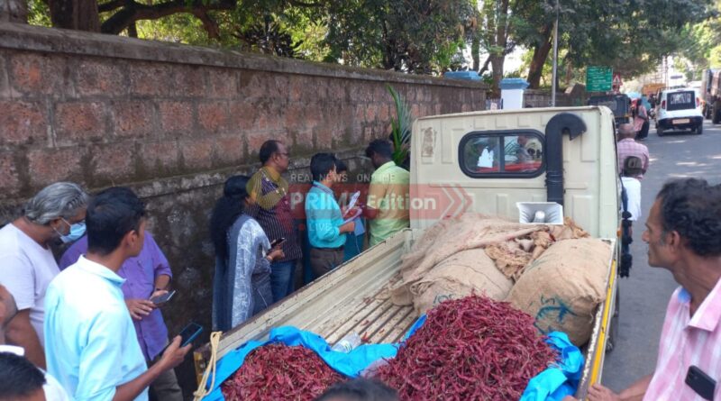 അനധികൃതമായി വില്പന നടത്തിയ വറ്റല് മുളകും വാഹനവും പിടികൂടി