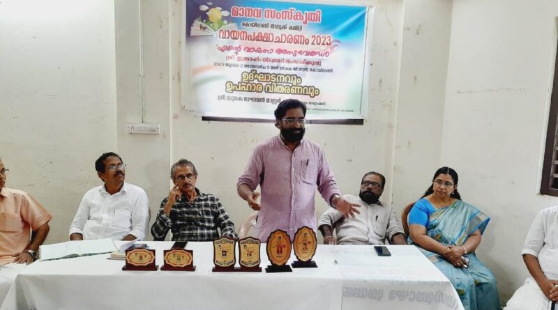 Read moreഗ്രന്ഥശാലകൾ സ്വതന്ത്ര്യ വായനക്ക് അവസരമൊരുക്കണമെന്ന് പ്രശസ്ത ചിത്രകാരൻ യു. കെ. രാഘവൻ പറഞ്ഞു. മാനവ സംസ്കൃതി കൊയിലാണ്ടി താലൂക്ക് കമ്മിറ്റി വായനാപക്ഷാചരണത്തോടനുബന്ധിച്ച് സംഘടിപ്പിച്ച എന്റെ വായനാനുഭവങ്ങൾ എന്ന